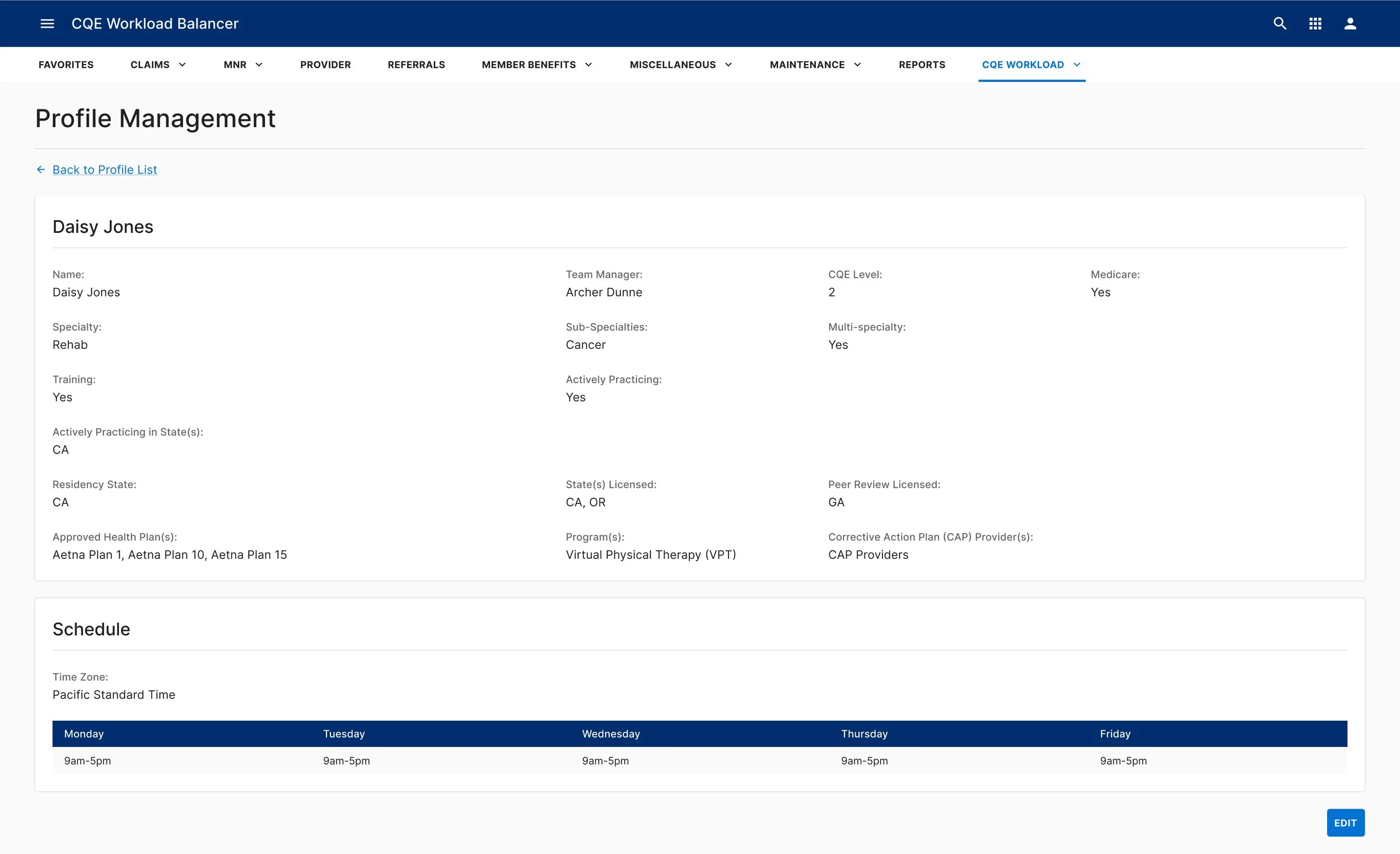 Based on my user research, I designed a workload management tool for CQE Managers and CQE Staff to assign and track MNRs. It included three interfaces: